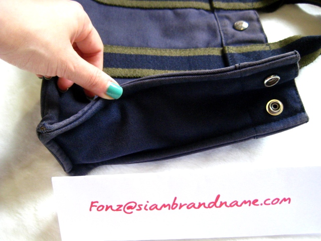 ฐานมีแผ่นรองก้นกระเป๋า ไม่ต้องกลัว ท้องกระเป๋าจะโย้ มีกระดุม ปิดที่ปากกระเป๋า