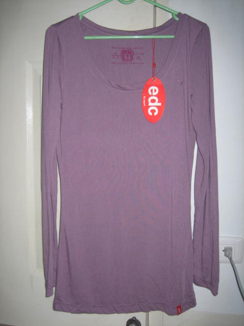เสื้อยืดเข้ารูปแขนยาว สีม่วง แบรนด์ edc