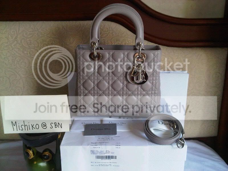 1) new Lady Dior ไซส์กลาง หนังแกะ สีเทาอ่อน อะไหล่เงิน