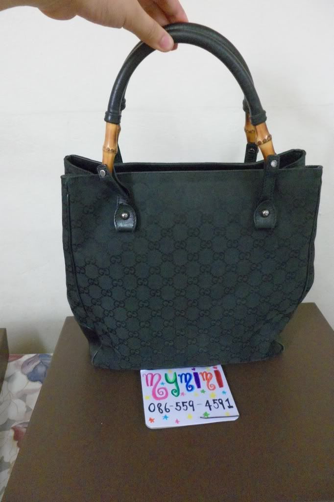 GUCCI ลาย SIGNATURE สีดำ แต่งหูไม้ไผ่ใส่ของได้เยอะเลยคะ ใส่หนังสือก็ได้