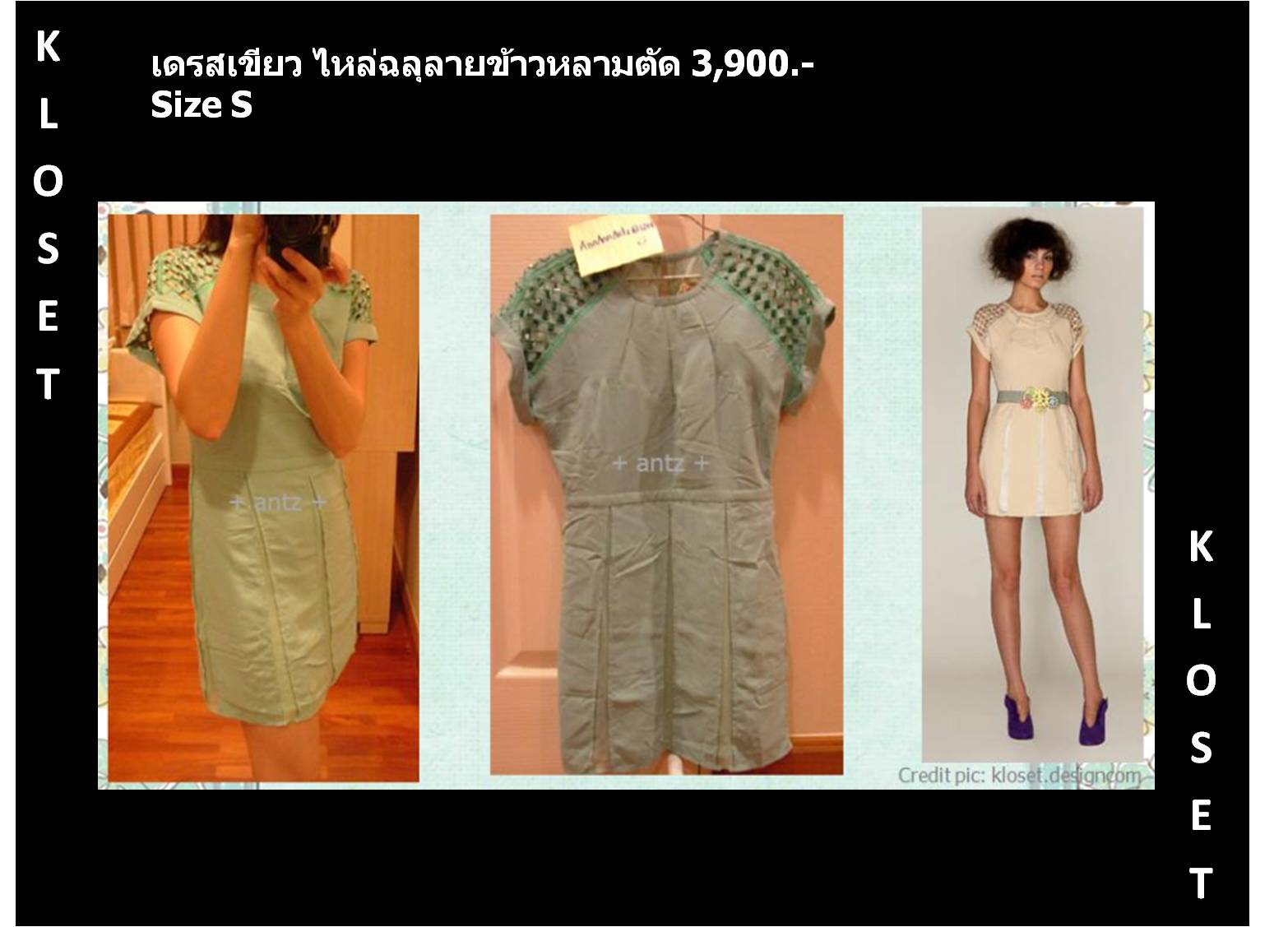 KLOSET DRESS เขียวมินท์อ่อน ฉลุไหล่ไซส์ S ..