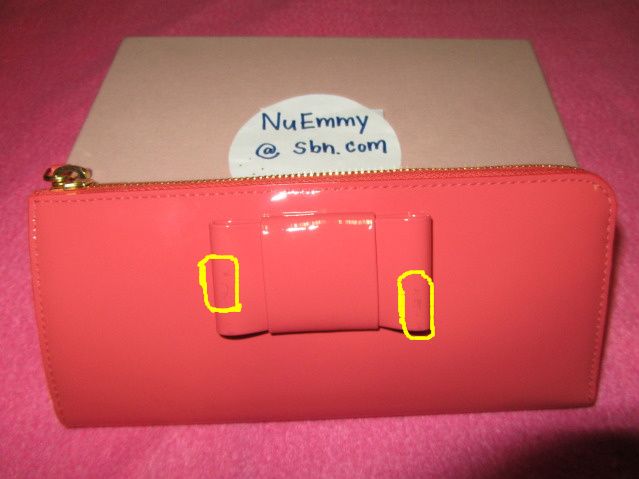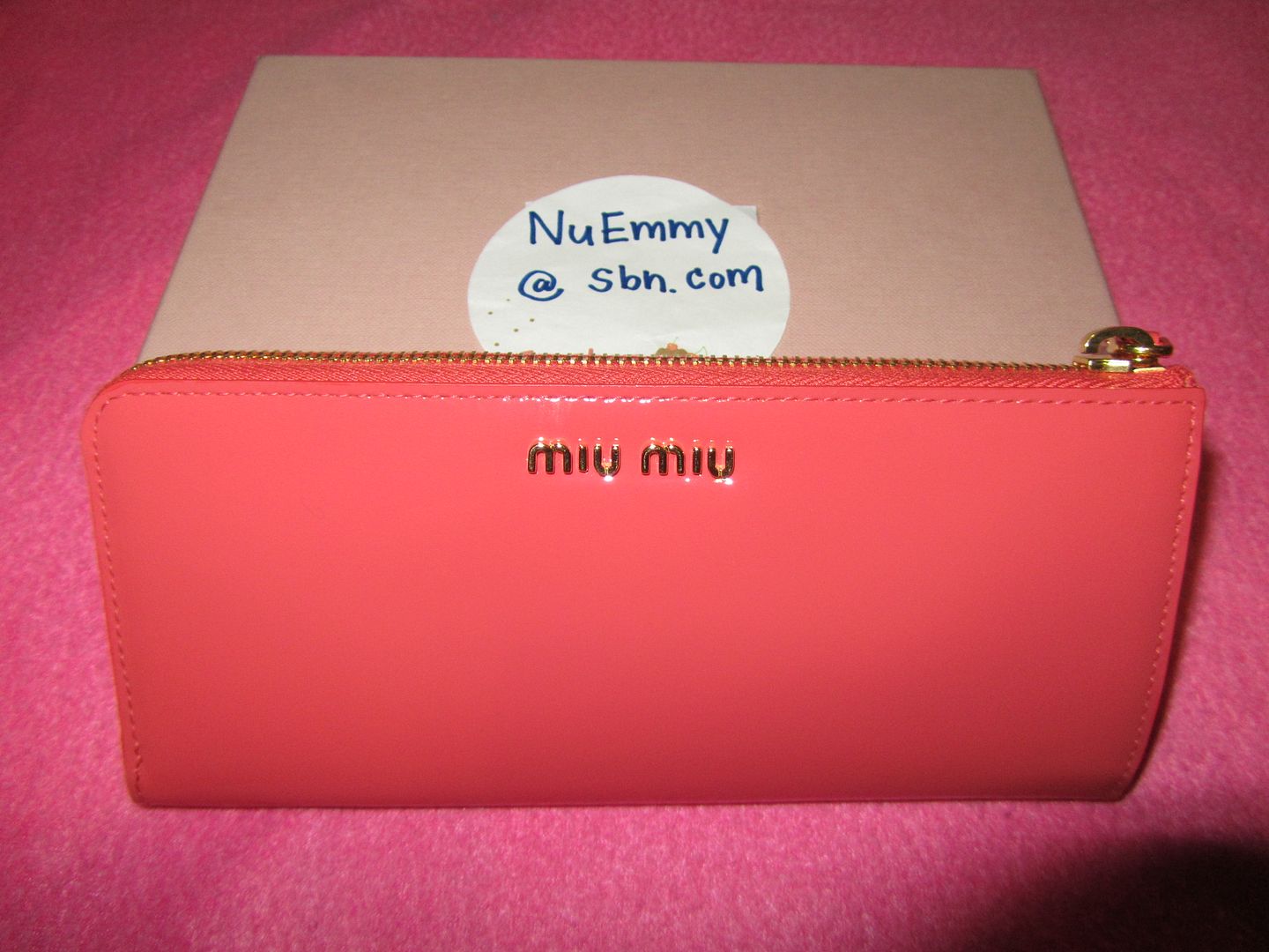 New MiuMiu Bow Long Wallet สีชมพูอมส้ม เป็นหนังทั้งใบ น่ารักมากๆๆๆ มีรอบเปื้อนนิดหน่อยตรงโบว์ เพราะเป็นตัวโชว์ค่ะ มีกล่องกับการ์ดค่ะ