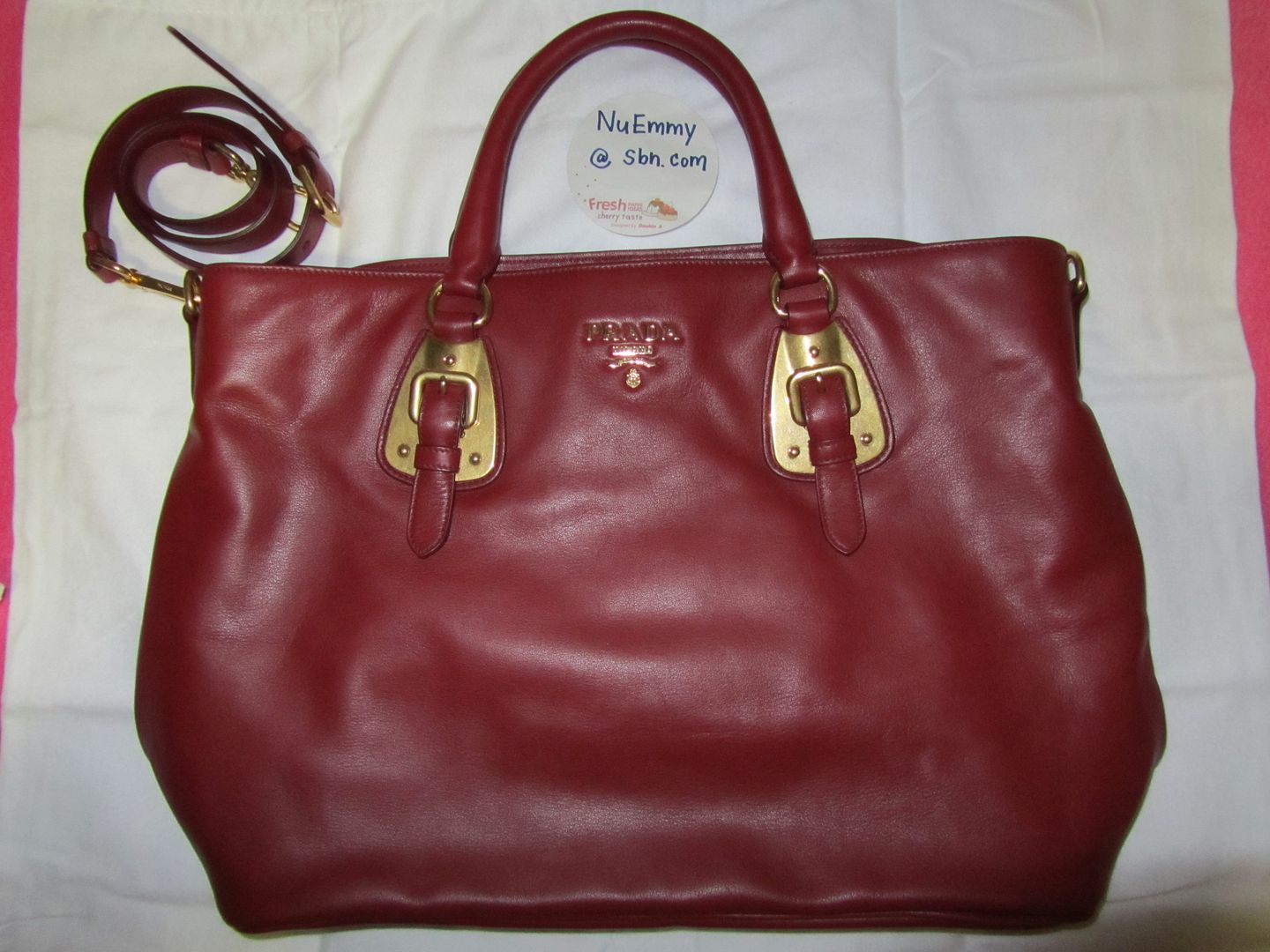 New Prada Shopping Bag สีแดง ทำจากหนังทั้งใบ มีสายสะพายให้ด้วยค่ะ อะไหล่ทองสุดสวย สวยมากกก ดูดีสุดๆ ของใหม่จากอิตาลี มีถุงผ้ากับการ์ดพลาสติกค่ะ