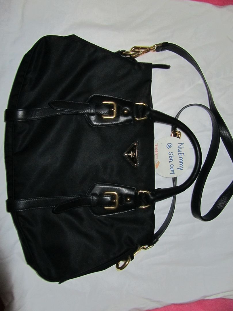 New Prada Shopping Bag สีดำ มีสายสะพายให้ด้วยค่ะ อะไหล่ทองสุดสวย ดูดีสุดๆ ของใหม่จากอิตาลี มีถุงผ้ากับการ์ดพลาสติกค่ะ