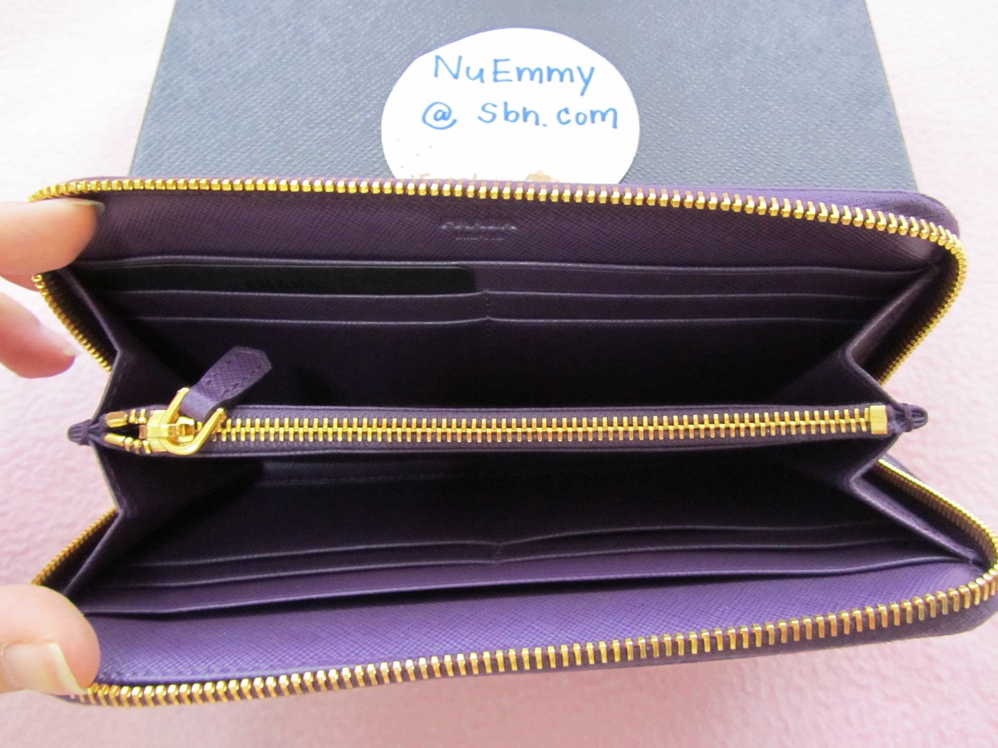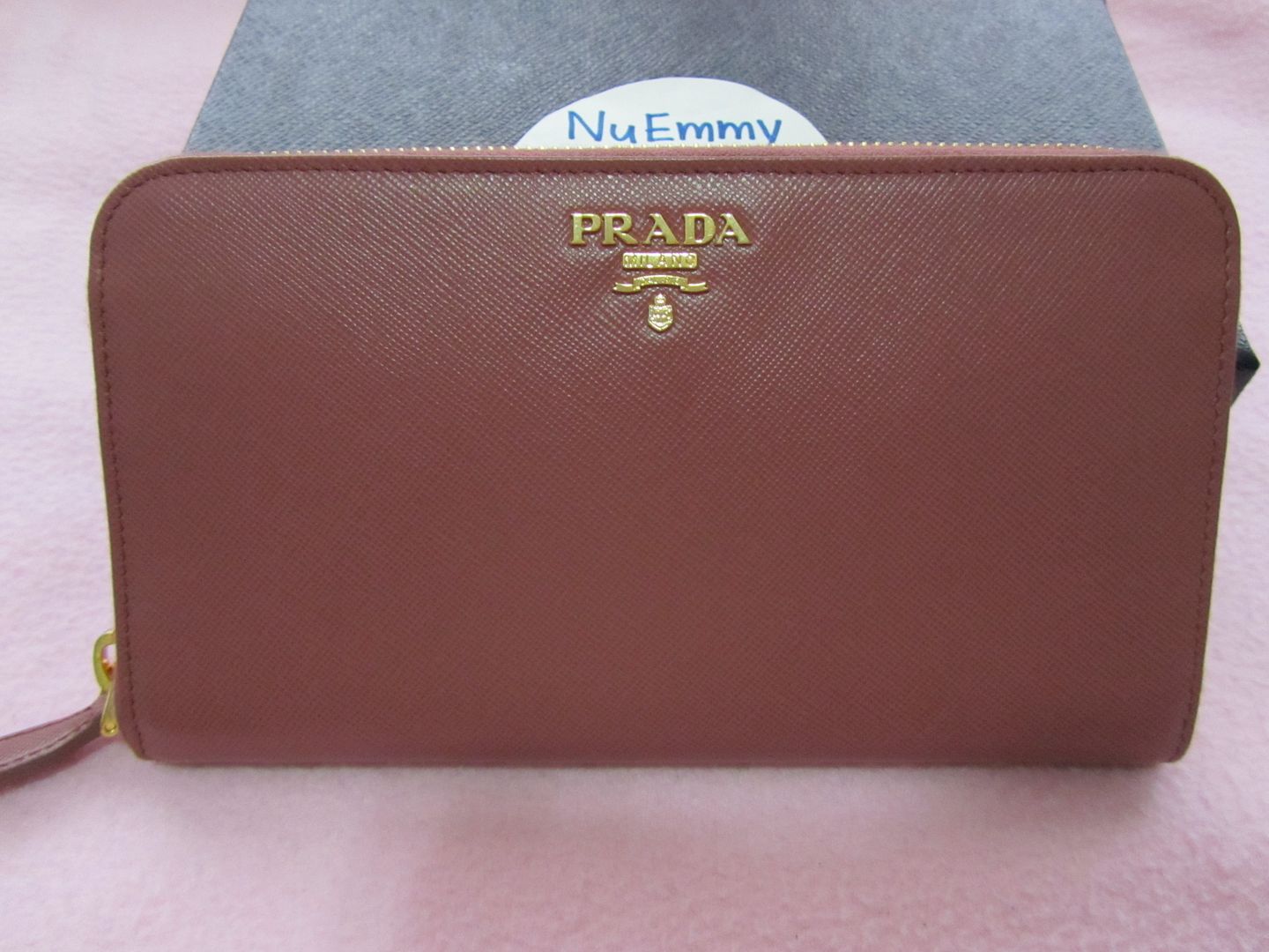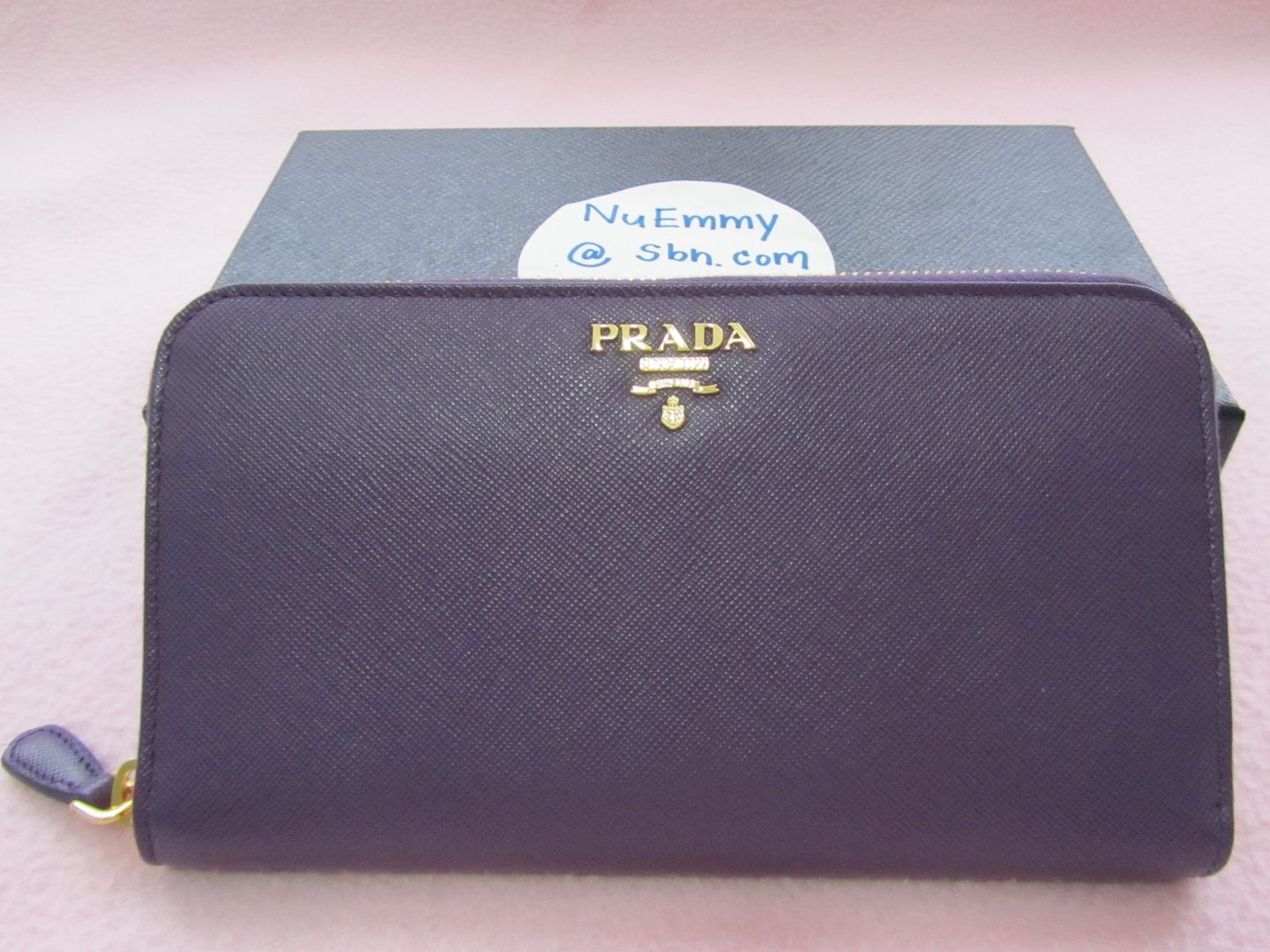 New Prada Zippy Long Wallet มี 5 สี สีแดง สีแดงอมชมพู สีชมพูอมส้มอิฐ สีม่วงอมเทา และ สีม่วง ด้านนอกและในเป็นหนังค่ะ มีกล่องกับการ์ดพลาสติกค่ะ