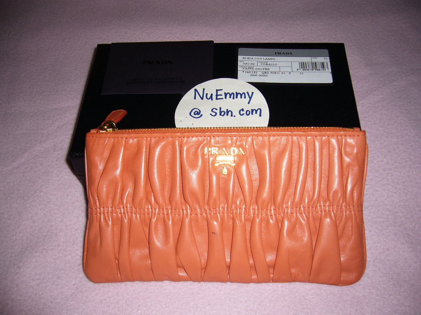 New Prada Zippy Long Wallet มี 2 สี สีม่วงแดงสุดสวย และ สีส้มเปรี้ยวจี๊ด ด้านนอกเป็นไนลอน ด้านในเป็นหนังค่ะ มีกล่องกับการ์ดพลาสติกค่ะ