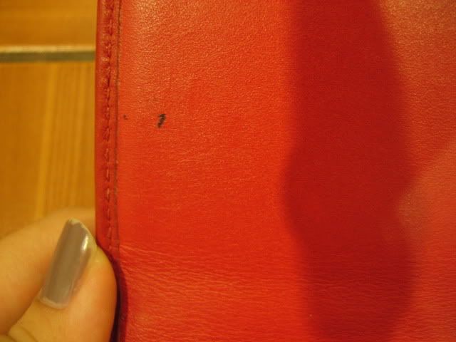 ตำหนิที่ว่านะคะ คือมุมกระเป๋าถลอกเป็นรูจิ๊ดดดดดเดียว ถ่ายรูปยังไม่เห็นเลยค่ะ ส่วนมุมอื่นๆไม่มีถลอกค่ะ
