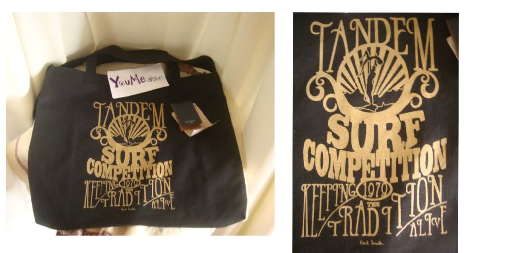 5) (((( NEW )))))) น้องPaul Smithค่ะ จากอังกฤษค่ะ เป็นถุงผ้าสีดำ ลายสกรีนสีออกทองๆค่ะ ใช้แบบเซอร์ๆนะคะ ใช้ง่ายได้ทุกโอกาส ไม่ต้องกลัวเลอะ มีสายสะพายข้างด้วยค่ะ