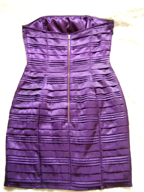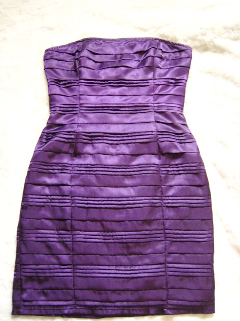 Dress เกาะอกสีม่วง ผ้าซาตินสีม่วงเงา เข้ารูป ซิปหลัง มีซับในนะคะใส่แล้วขาวสุดๆ