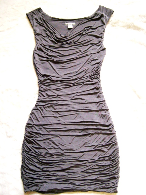 Dress เข้ารูป ผ้าทิ้งๆ สีเทา ใส่ออกมาแล้วสวยคะ ผ้าจับจีบย่นๆ ทำให้ดูไม่ ได้เน้นส่วนที่เกินออกมา ใส่แล้วพรางได้ดีทีเดียว 555