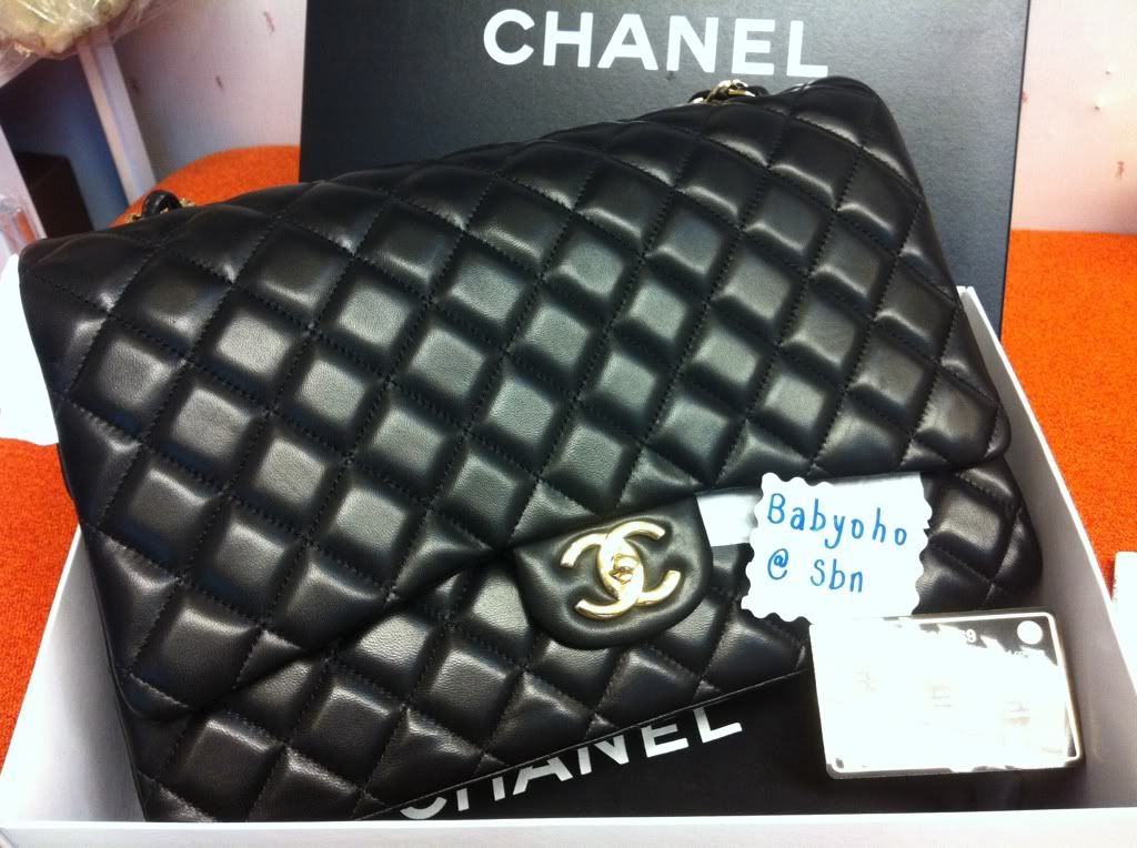 5. New Chanel Classic, Maxi 13.5', Lamb skin, Black , GHW...Double flap