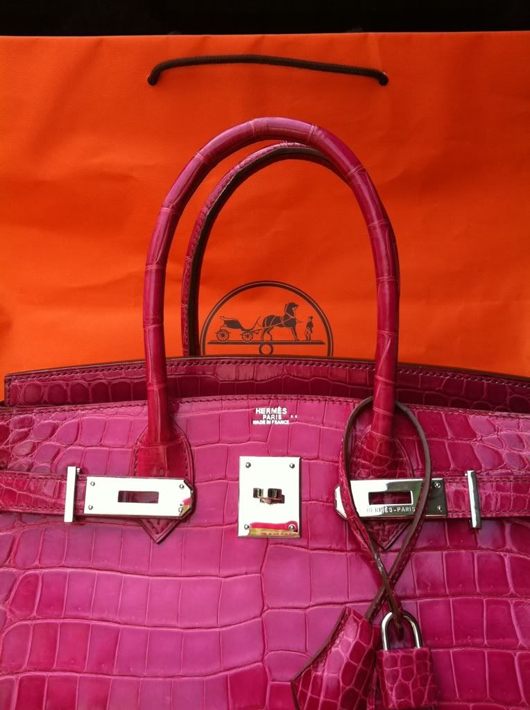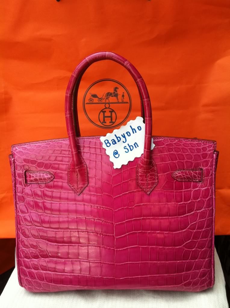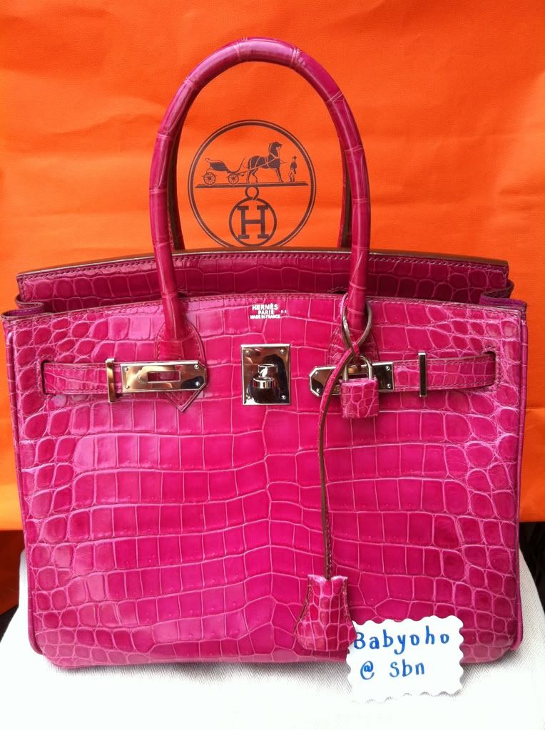 1. Hermes Birkin30, Crocodile, Rose Shocking Pink color, PHW, Nilo, Stamp I>>>