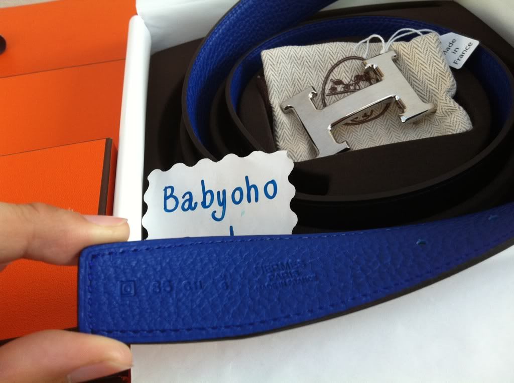 [FONT=UPC-Angsana]30. New Hermes, Belt, Electric Blue/Togo+Black/Box, with H Silver, Stamp O...