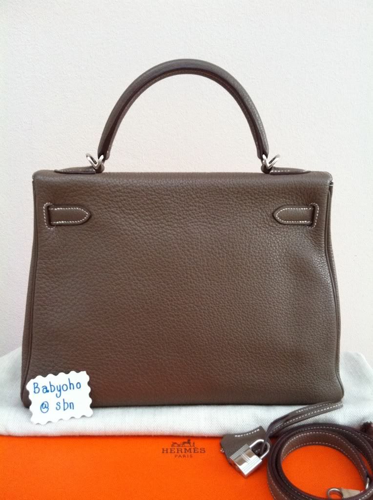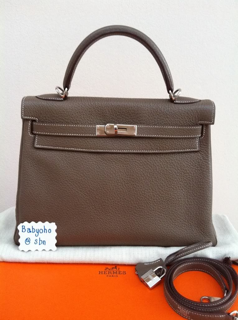 9. Hermes Kelly 32, Etoupe color, Clemence, PHW, stamp M