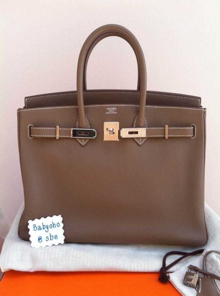 7. Hermes Birkin 35, Etoupe color, Togo, PHW, stamp L