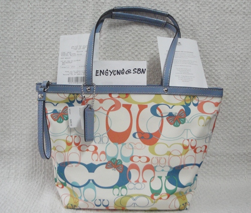 5. COACH - 17422 Coach Signature Multi Color Optic Print Tote เป็นของใหม่คะ ขนาด 14*9.5*3.5 นิ้ว อุปกรณ์มี น้องเป๋า Care Card และ Gift Receipt ราคารวมส่ง 5,690 บาท