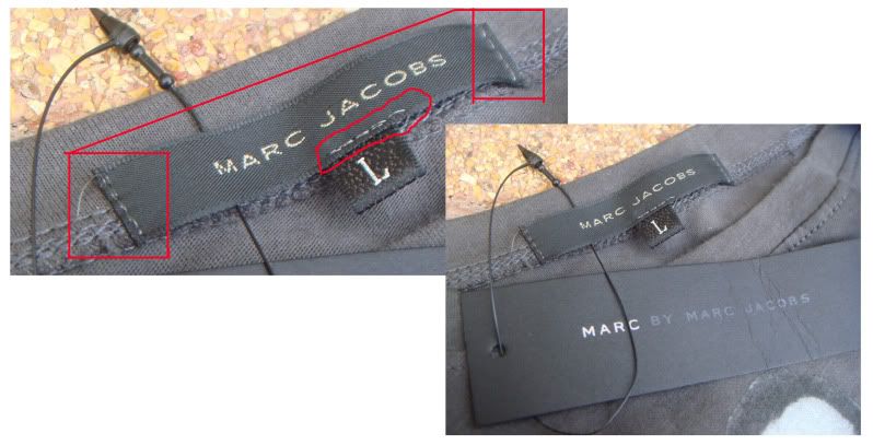 มีหลายคนบอกว่า ของแท้ให้ดูใต้ ป้าย ว่ามีลักษณะเหมือนตัดป้ายเก่าออก แล้วใส่ป้าย Marc ใหม่ลงไป