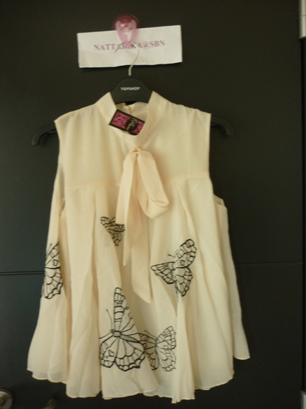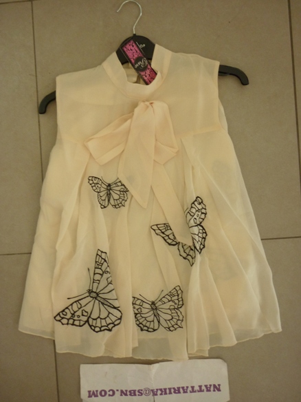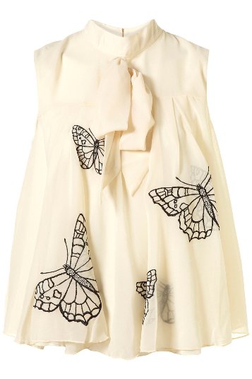 เสื้อแขนกุดสีครีมปักลายผีเสื้อน้อยกำลังบิน สวยมากกกกกก