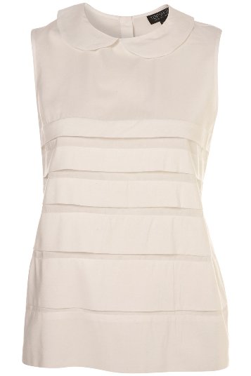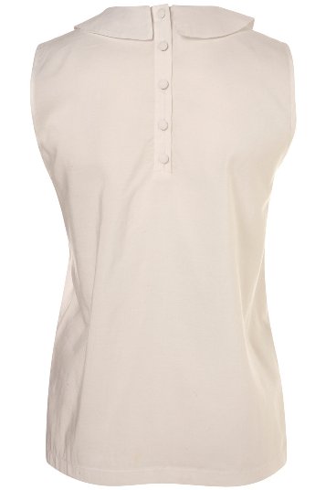 เสื้อสีขาวคอบัวแขนกุด ด้านหน้าทำเป็นชั้นๆ