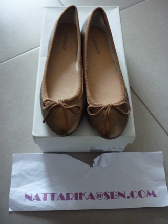 รองเท้าสีน้ำตาลทองมีโบว์เล็กน่าร้ากกกก ใส่สบายนิ่มมากเลยค่ะ