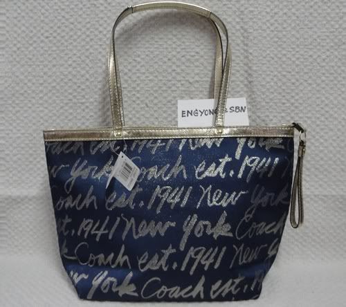 6. COACH - 17097 Signature Script Lurex Tote สี Navy/Gold ขนาด 14*9*3 นิ้ว อุปกรณ์มี น้องเป๋า และ Care Card ราคาพิเศษรวมส่ง 5,490 บาท