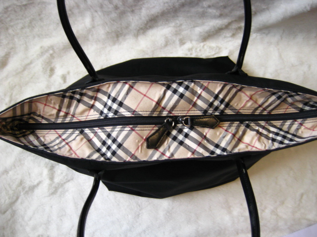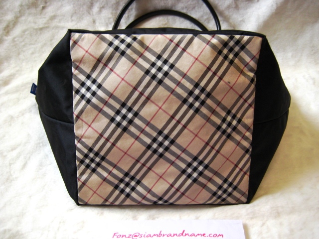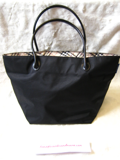 Burberry Shopping สีดำ ลาย Signature ที่ฐานกับขอบซิป