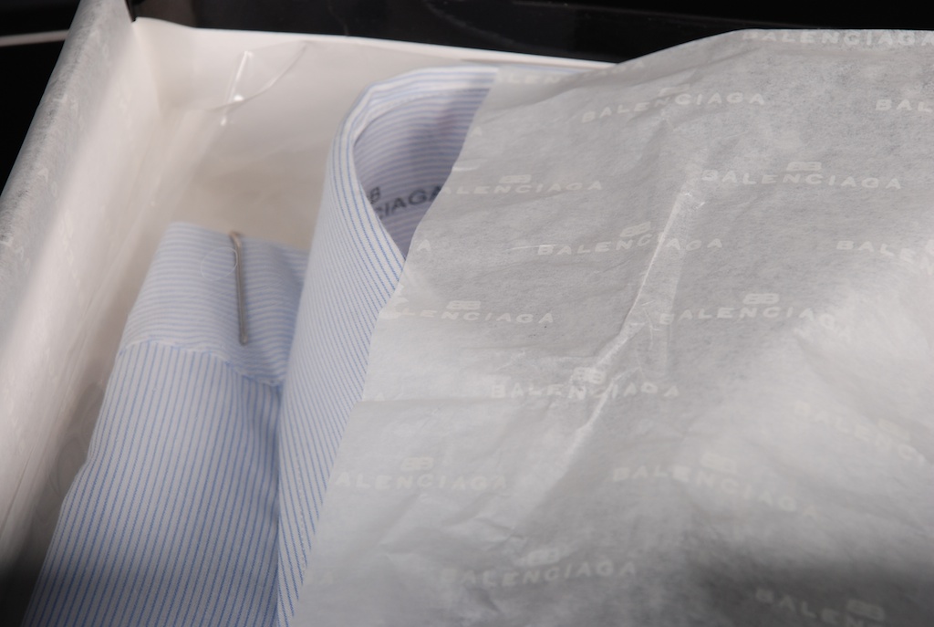 กระดาษห่อสลักคำว่า Balenciaga เข้าไปในตัวกระดาษทั้งแผ่น! (ซึ่งของปลอมคงไม่มีใครลงทุนทำถึงขนาดนี้!!)