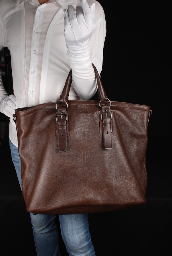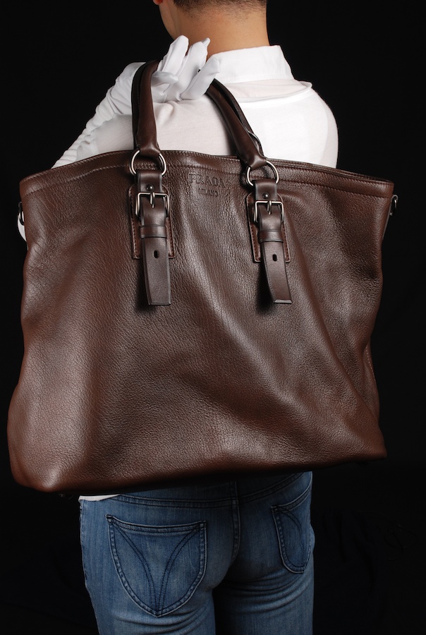 กะเป๋าใบนี้มันจึงเป็น tote แบบใหญ่สุด สังเกตุได้ว่าตอนถือ กะเป๋าด้านข้างส่วนบน มันจะตกๆ ห้อยๆลงมา ทให้ดูเป็นการถือแบบไม่ได้ตั้งใจเก๋ แต่มันเก๋เองตามธรรมชาติของหนัง แ model ที่ Prada ตั้งใจออกแบบมาอย่างดีนั่นเอง