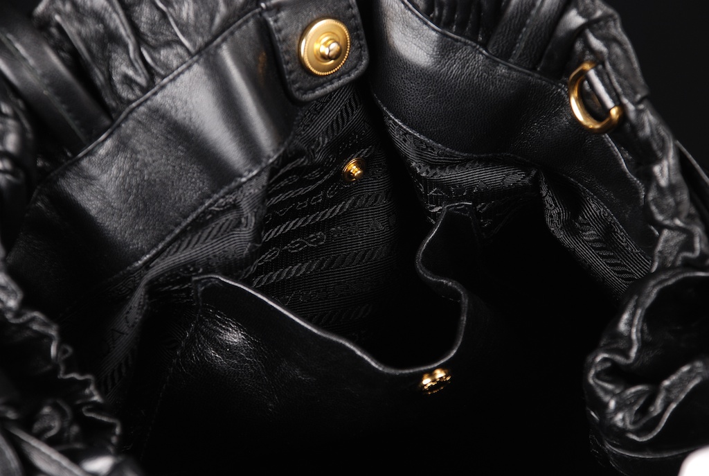 ใบนี้ ต้องใช้ หนังแกะ 2 ชั้น เอามาเย็บ ติดกัน แล้ว เอามาให้ย่นแบบ เป็นกรรมวิธีเฉพาะของ prada เท่านั้น (หนังชั้นเดียว มันจะทำให้ยับย่นไม่สวยแบบนี้)