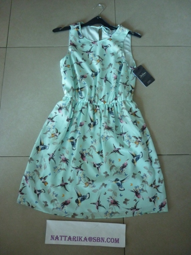 เดรสแขนกุดลายนกน้อยทั้งตัวน่าร้ากกอ่ะ คอบัวสีดำมาพร้อมเข็มขัดการันตีของจริงสวยน่ารักมากค่ะ