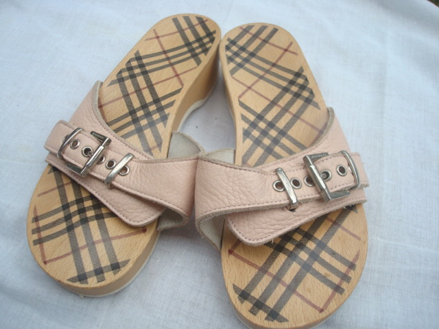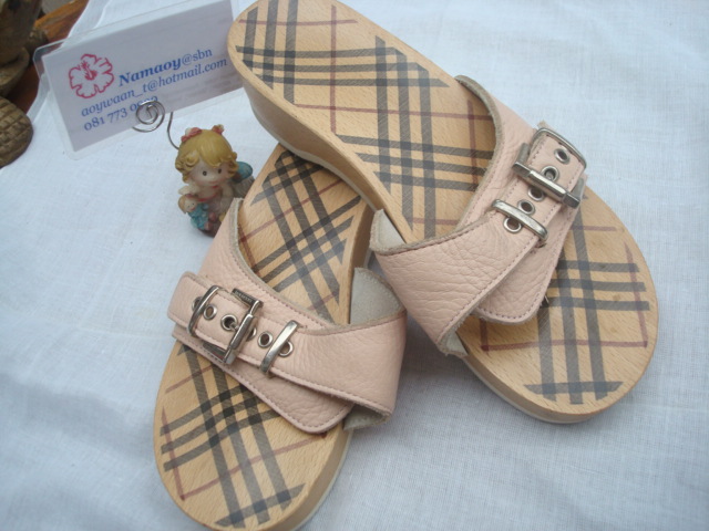 พื้นรองเท้าทำจากไม้สกรีนลายของburberyลงไปบนไม้ ใส่ง่ายใส่สบายครับ