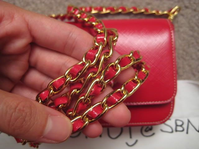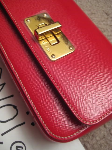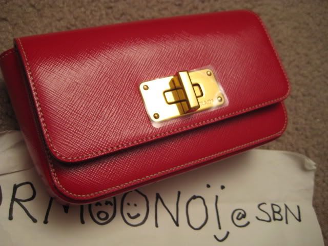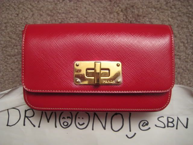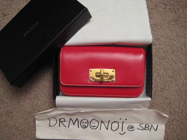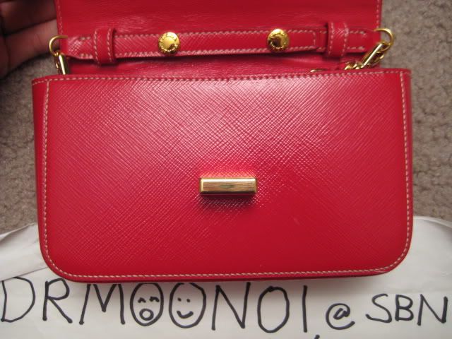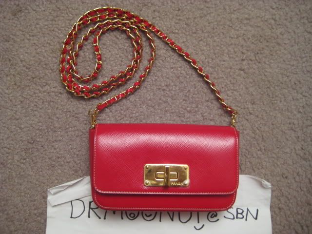 Default Re: TM: พี่หมูน้อยกับ Prada Saffiano mini bag สีแดงโซ่ทองจ้า 100% new and authentic na kha