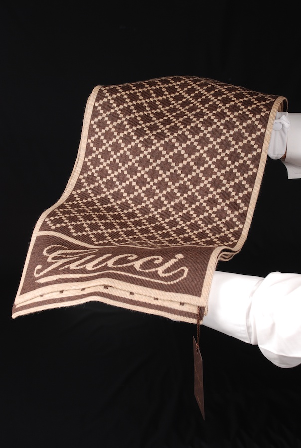 เป็น scarf แบบ หนา-นุ่ม.... ดูดี มีค่า ด้วยลวดลาย Diamate ... ซึง่แปลว่า เพชร... ใครรู้จัก ประวัติศาสตร์ Gucci จริง จะรู้ว่า มันกำเนิดมาก่อน ลาย GG อีก และเป็นลวดลายที่ Gucci จะใช้ในกะเป๋าเดินทางเท่านั้น... ซึ่งจัดเป็นลวดลายที่ มีระดับมาก เนื่องจากลวดลายใดที่สามารถมีอยู่ในกะเป๋าเดินทางได้ ถือเป็นลวดลายที่สุดยอดของที่สุดแล้วในสมัยนั้น เพาะคนรวย / celeb มีระดับสมัยนั้นเค้าจะโดยสารทางเรือกันอย่างดียว เนื่องจากยังไม่มีเครื่องบิน เค้าก็จะเอากะเป๋าเดินทางไปปะกวดปะชันกัน ก่อนขึ้นเรือ ไททานิค... แน่นอน ว่าลวดลาย Diamate ก็ได้ถูกนำมาใช้ในกะเป๋าเดินทาง Gucci เพื่อแสดงถึงความมั่งคั่ง ร่ำรวยในสมัยนั้น เพาชะนั้นใช้ผ้าพันคอผืนนี้มันถึงเก๋กว่า เพาะมันมีประวัติศาสตร์ อีกทั้งอักษร Gucci ที่เขียนเป็นอักษรภาษาเขียน เริ่มต้นด้วยG ตัวใหญ่ และอักษรตัวเอนก็ก็แสดงถึงความคลาาสิค แตกต่างจากตัวเขียนธรรมดาดาษดื่นที่เราเห็นๆกัน
