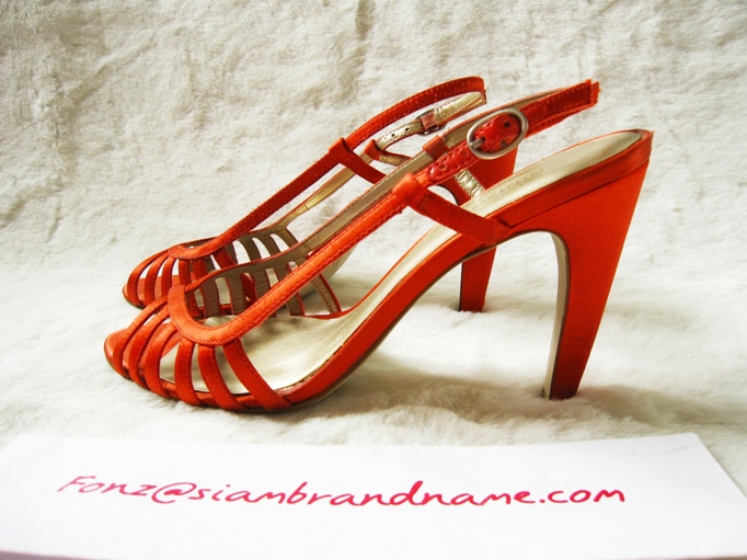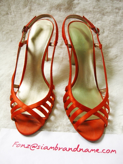 สีแดงอมส้ม เคยใส่ออกงานไม่เกิน 2 ครั้ง ส้นสูงประมาณ 4 นิ้ว นะคะ ใส่แล้วขาขาว และดูยาวมั่กๆ