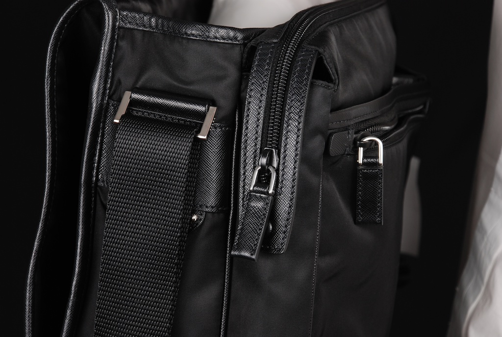 design ได้ intellgent มากเลย... จะเห็นได้จากด้านข้างยังอุตส่ห์ทำเป็นหนัง strap เปิด-ปิด เพื่อสามารถขยายได้ในยามที่ ของใน 2 กะเป๋าเล็กต้องบรรจุของเพิ่ม... ให้รู้ไว้เลยว่า กะเป๋า prada ที่ดูเหมือนธรรมดาของ Prada ต่างผ่านกระบวนการคิด อย่งถี่ถ้วน.[