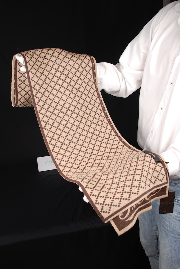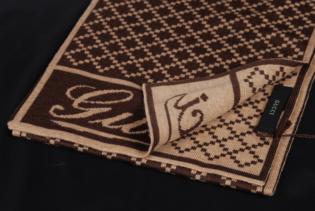 เป็น scarf แบบ หนา-นุ่ม.... ดูดี มีค่า ด้วยลวดลาย Diamate ... ซึง่แปลว่า เพชร... ใครรู้จัก ประวัติศาสตร์ Gucci จริง จะรู้ว่า มันกำเนิดมาก่อน ลาย GG อีก และเป็นลวดลายที่ Gucci จะใช้ในกะเป๋าเดินทางเท่านั้น... ซึ่งจัดเป็นลวดลายที่ มีระดับมาก เนื่องจากลวดลายใดที่สามารถมีอยู่ในกะเป๋าเดินทางได้ ถือเป็นลวดลายที่สุดยอดของที่สุดแล้วในสมัยนั้น เพาะคนรวย / celeb มีระดับสมัยนั้นเค้าจะโดยสารทางเรือกันอย่างดียว เนื่องจากยังไม่มีเครื่องบิน เค้าก็จะเอากะเป๋าเดินทางไปปะกวดปะชันกัน ก่อนขึ้นเรือ ไททานิค... แน่นอน ว่าลวดลาย Diamate ก็ได้ถูกนำมาใช้ในกะเป๋าเดินทาง Gucci เพื่อแสดงถึงความมั่งคั่ง ร่ำรวยในสมัยนั้น เพาชะนั้นใช้ผ้าพันคอผืนนี้มันถึงเก๋กว่า เพาะมันมีประวัติศาสตร์ อีกทั้งอักษร Gucci ที่เขียนเป็นอักษรภาษาเขียน เริ่มต้นด้วยG ตัวใหญ่ และอักษรตัวเอนก็ก็แสดงถึงความคลาาสิค แตกต่างจากตัวเขียนธรรมดาดาษดื่นที่เราเห็นๆกัน