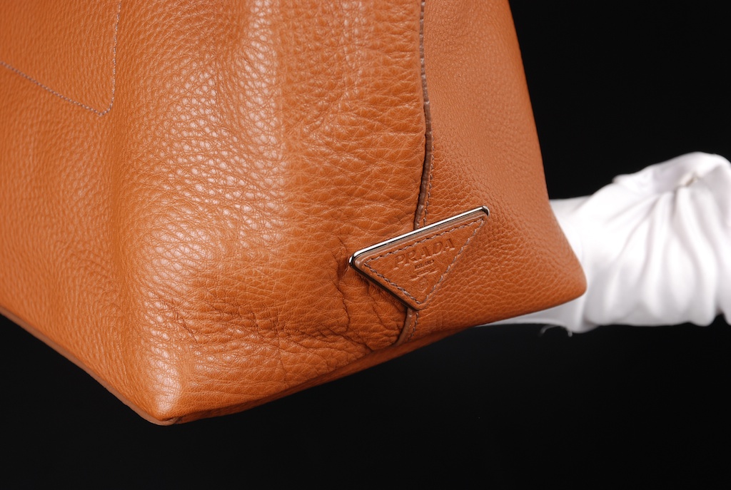 ด้วยการใช้ หนังคุณภาพมาปั้มลายขวางเพื่อกันรอยขีดข่วน อันเป็น signature และใบนี้ผลิตภายในอิตาลี ในสมัยที่ Prada ยังไม่ได้ดังมากๆ
