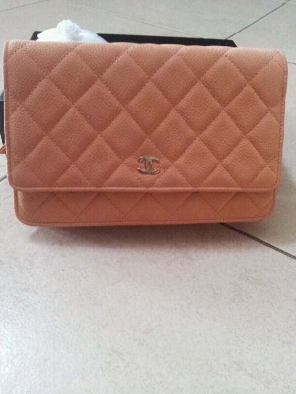 NEW Chanel WOC สีเบจโอโรส สวยหวานมาก ๆ ค่ะ โซ่เงินค่ะ สีนี้ทำน้อยนะคะ หนังคาร์เวียร์ อย่างดีค่ะ