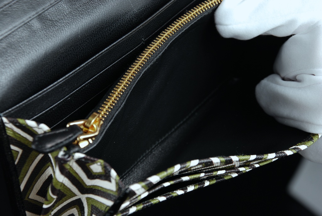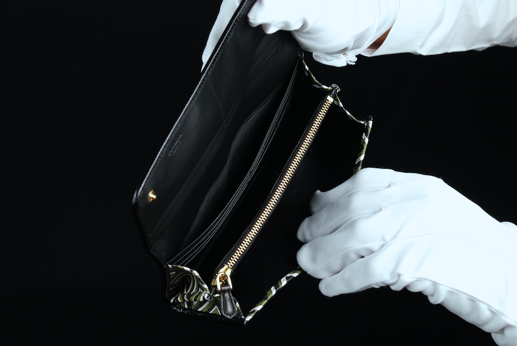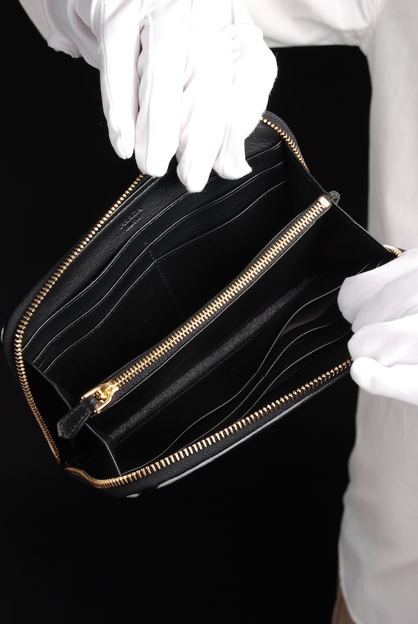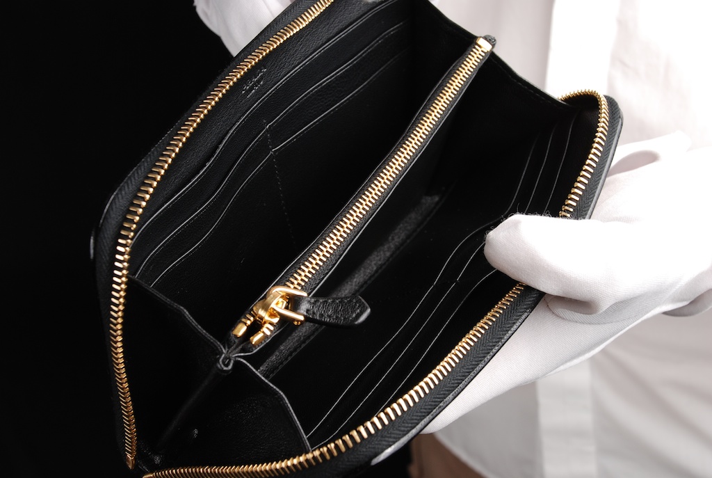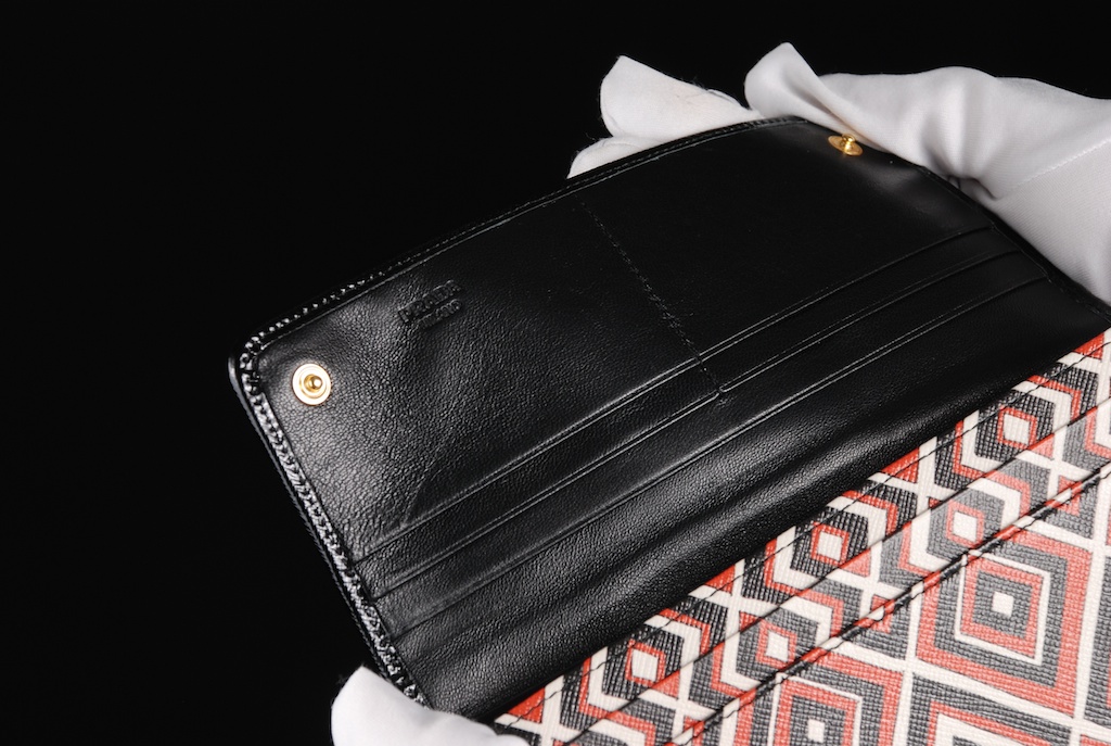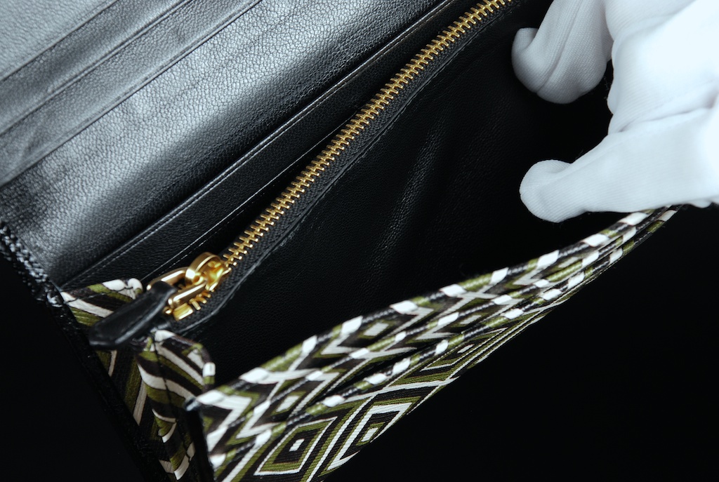 เลิศเลออีกชั้นด้วยการ lining ด้านในกะเป๋าด้วยวัสดุหนังแกะ ซึ่งนิ่มมาก และแสนแพงเอามาย้อมดำให้ลงตัว เวลาเอามือสัมผัสล้วงเข้าไปเวลาใช้งาน จะรู้สึกถึงความแตกต่าง ว่านิ่มมาก อีกทังทำให้กะเป๋าตังแตกต่างแบบดูดีมีรสนิยม ต่างจากใบอื่นที่ ข้างในเป็น saffiano อย่างเดียวที่สัมผัสแล้วจะสากมือใครๆก็ใช้กัน