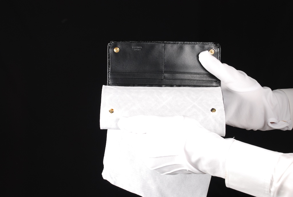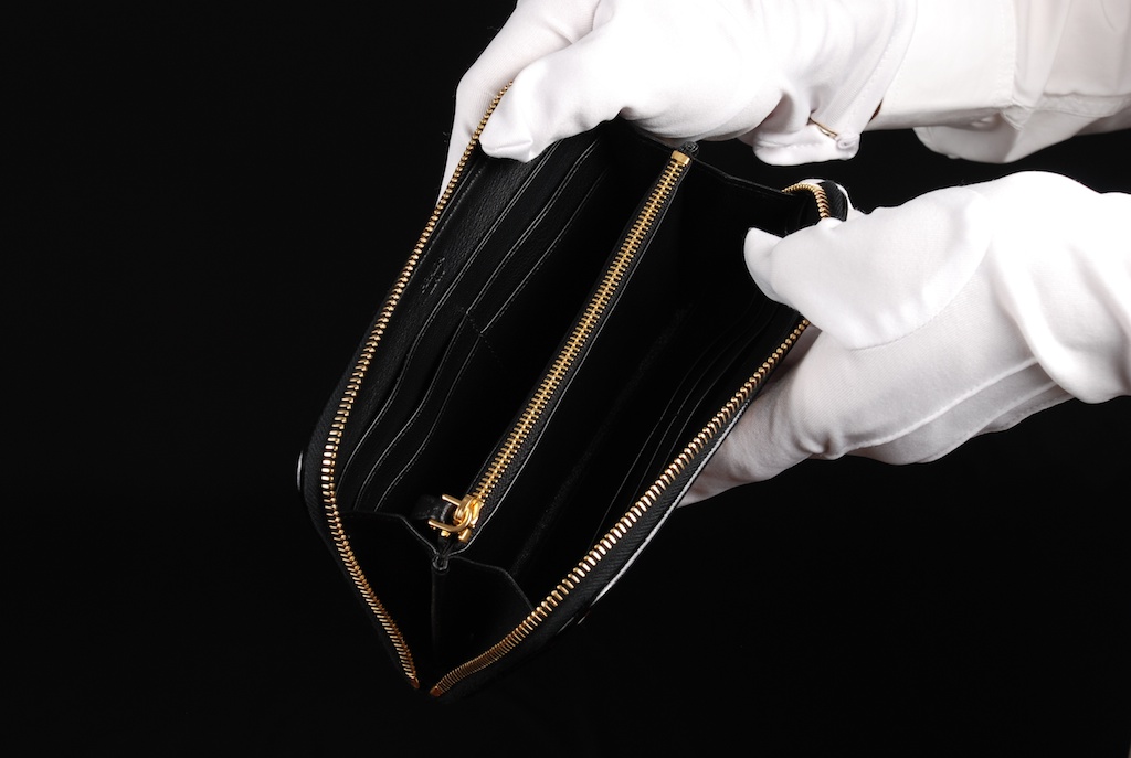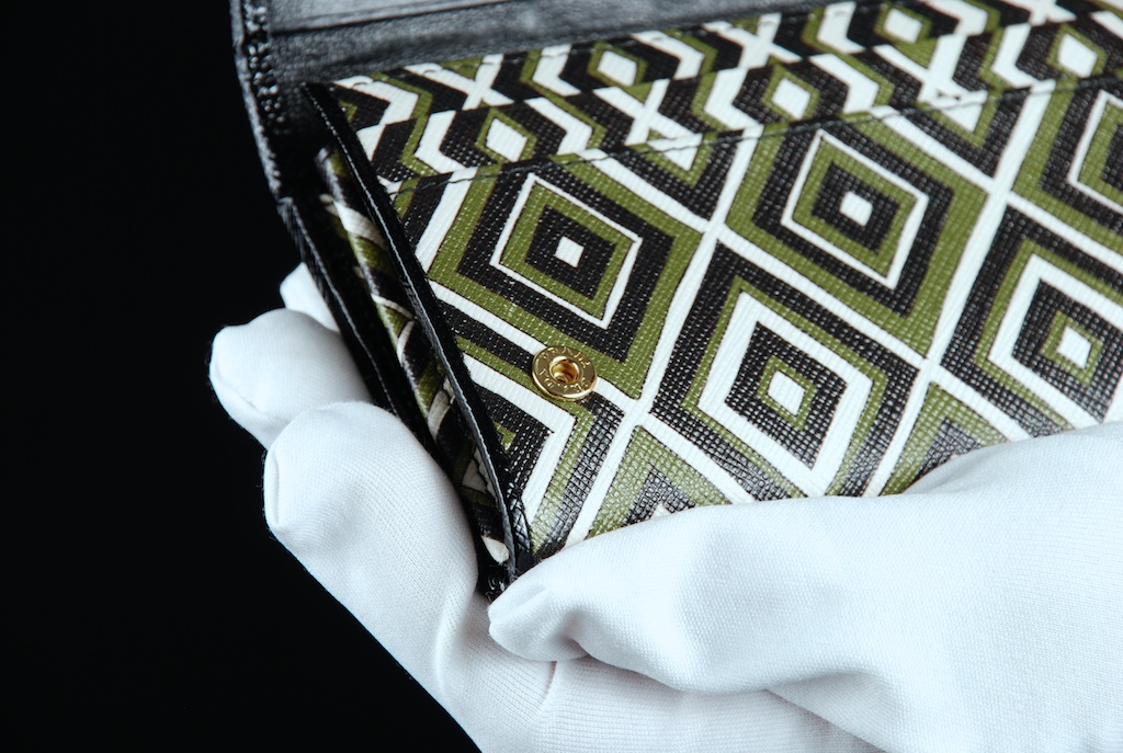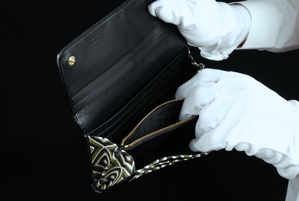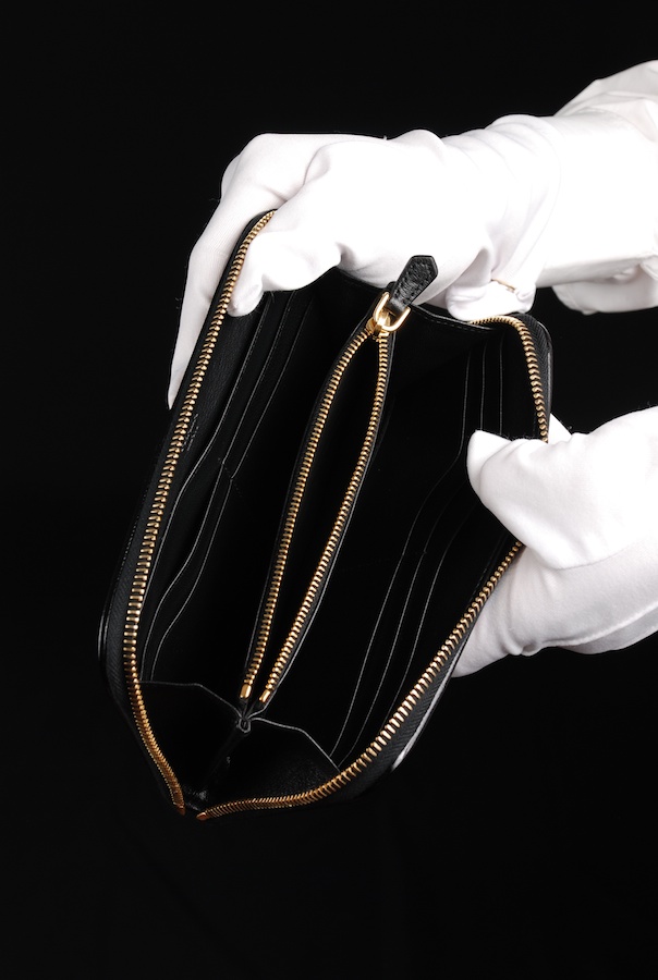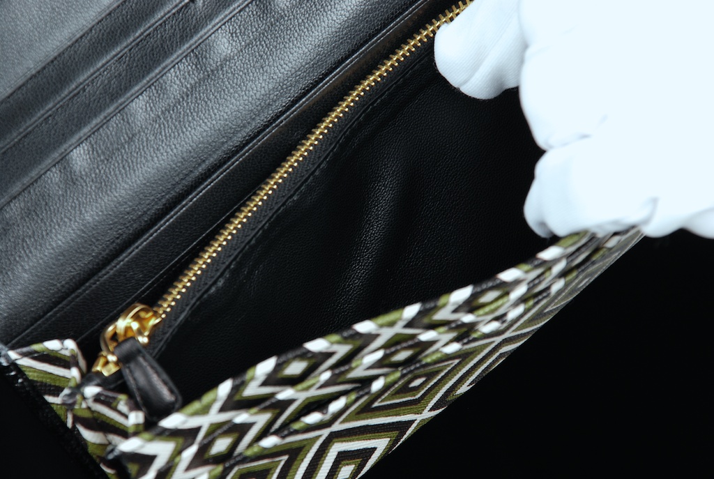 เลิศเลออีกชั้นด้วยการ lining ด้านในกะเป๋าด้วยวัสดุหนังแกะ ซึ่งนิ่มมาก และแสนแพงเอามาย้อมดำให้ลงตัว เวลาเอามือสัมผัสล้วงเข้าไปเวลาใช้งาน จะรู้สึกถึงความแตกต่าง ว่านิ่มมาก อีกทังทำให้กะเป๋าตังแตกต่างแบบดูดีมีรสนิยม ต่างจากใบอื่นที่ ข้างในเป็น saffiano อย่างเดียวที่สัมผัสแล้วจะสากมือใครๆก็ใช้กัน