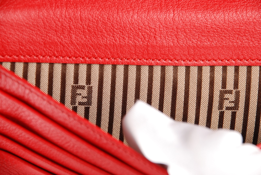 'A Fendi bag is designed and manufactured by hand. No Fendi bag is a production-line item. Straps are made of leather. The stitching on the bag is even and straight'
