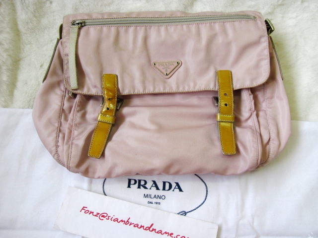 Prada Cross-body/Shoulder สีชมพู มาพร้อมถุงผ้านะคะ กระเป๋าผ่าร่มสไตล์ปราด้า ดูแลง่าย ส่งซักแห้งได้คะ