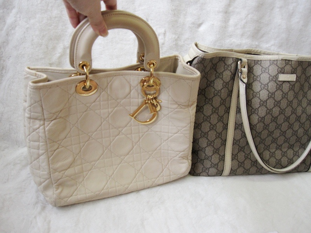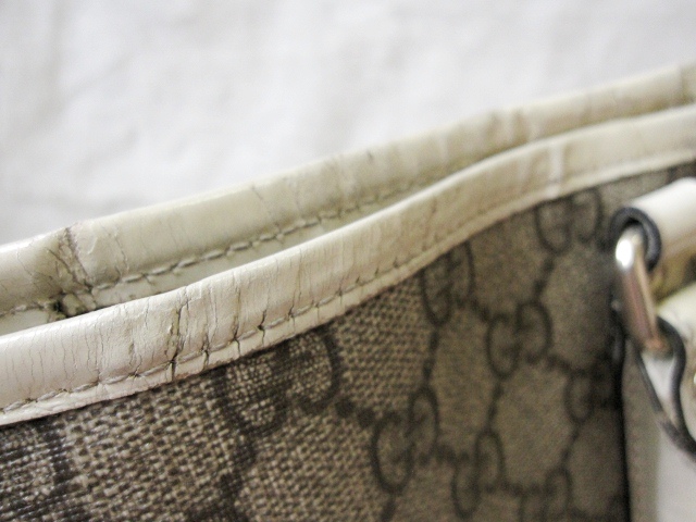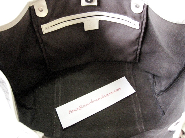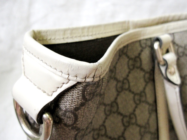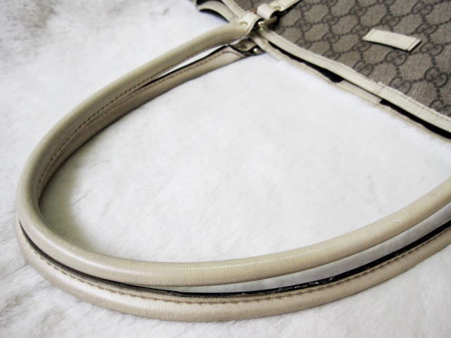 Gucci ทรง Shopping Bag ลาย GG Signature สายหนังสีครีม ตัวกระเป๋าเป็น PVC ดูแลง่าย ลุยได้สบายคะ