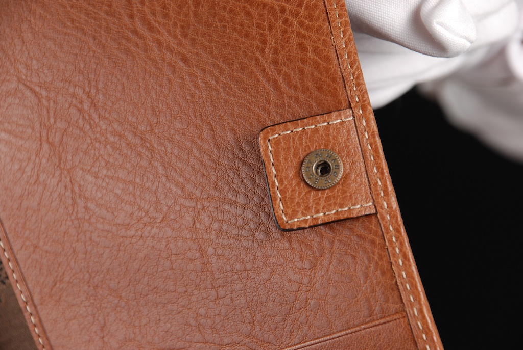 มีสายหนังทำแบบเข็มขัดหุ้มโดยรอบ เพื่อปลดออกได้หากกะเป๋าใบนี้ต้องจุของมากๆ