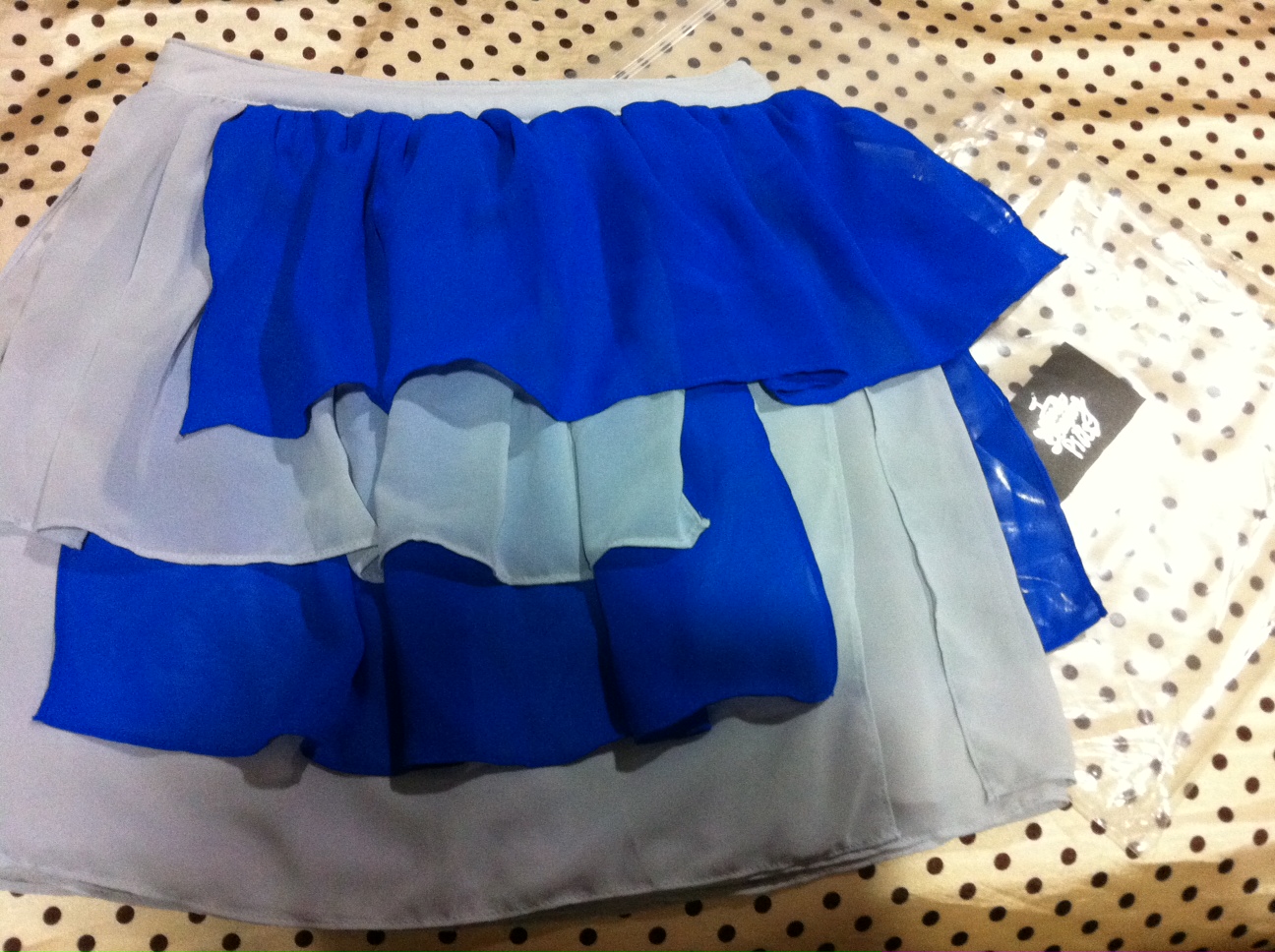 sleepingpills 2-TONES CHIFFON SKIRT IN COBALT BLUE AND LIGHT GREY กระโปรงสั้นผ้าชีฟองตัดแต่งผ้าเป็นชิ้นระบาย เย็บสลับสี 2 tone สี cobalt blue โทนสีน้ำเงินสดสว่าง สลับสีเทาอ่อน ใส่สวยนะคะ เป็นกระโปรงเอวไม่สูงไม่ต่ำ อยู่ระดับสะดือ