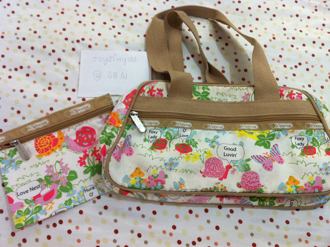 กระเป๋า le sportsac ลายน่ารัก ใบใหญ่คะ จุของได้เยอะมาก แถมใบเล็กเข้า set คะ สภาพใช้งานนะคะ มีรอยเปื้อนยังไม่เคยนำไปซักทำความสะอาดคะ
