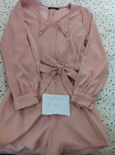 Pass the Sugar Jumpsuit mo&friend จั๊มสูทขาสั้นสีชมพูแขนยาว มีโบว์ผูกเอว Price: 2,150฿ --> 1200 บาท