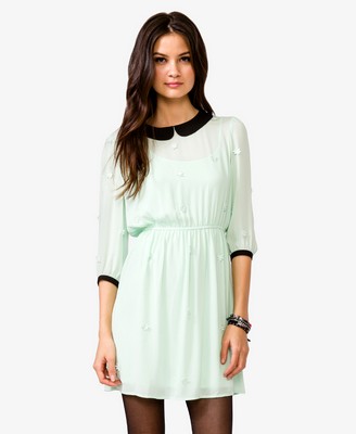 เดรสลายจุดดำขาว คอบัวลูกไม้สีขาวน่าร้าก พร้อมส่ง