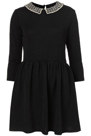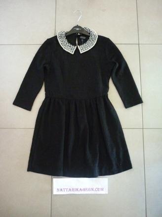 ♥♥– New LooK เดรสผ้ากำมะหยี่สีดำเพชรทั้งตัว สวยหรูน่ารัก Size UK 10