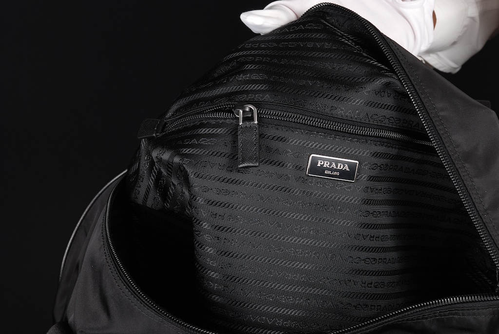 ของแท้ผ้าข้างในต้องเป็นผ้าถัก-ทอเท่านั้น ที่ Prada จะเรียกว่า 'Jacquard' ตั้งชื่อตาม ผู้ประดิษฐ์เทคโนโลยีนี้ ซึ่งเป็นคนฝรั่งเศส จับแล้วต้องรู้ว่า เ็ปนการถักทอแบบเลอค่า ไม่ใช่ผ้าฝ้ายพิมพ์ลายดูราคาถูก แบบของปลอม!